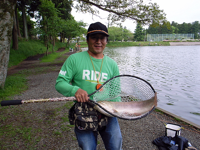 なんで俺が!と思ったら皆さん結構釣ってました。恐るべし!管理釣り場!そして養殖のイトウくん!